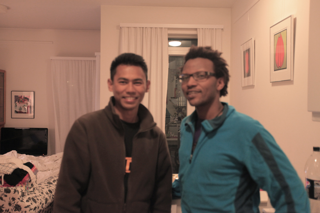 2 icelanders, one african and one malay man chilling having dinner together talking nonsense for hours lol!