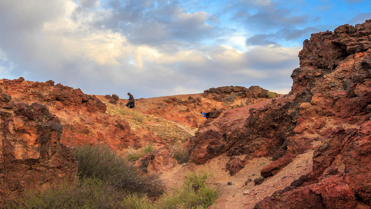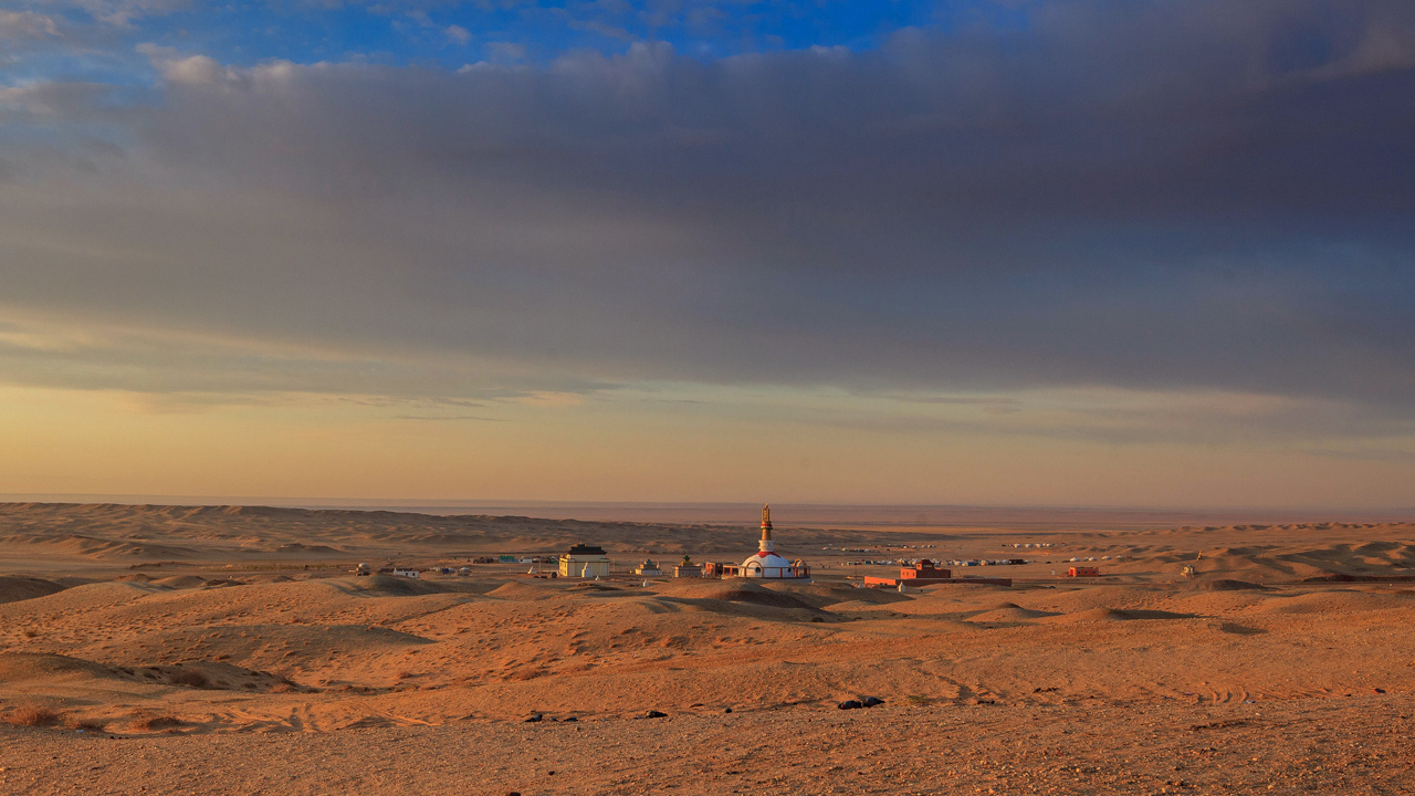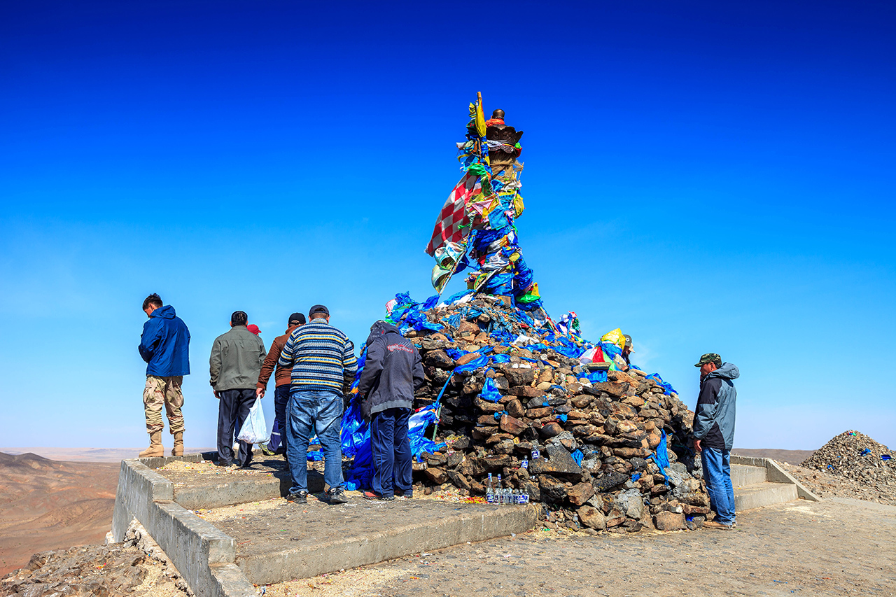 locals performing some rituals near the temple in the Gobi Desert