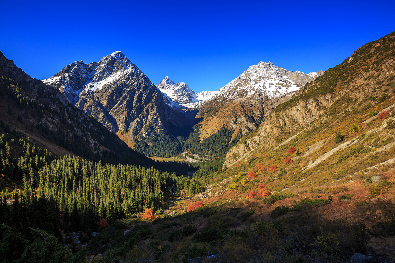 The trek was quite easy at first when we walked through the forest… not much climbing but quite confusing. After a few minutes going through the woods, we finally came to an open space with beautiful mountain view all around but that was when the tough climb starts… all the way to the top! Climbing all the way for hours above 3500m altitude can be quite tiring unless trained well. I can imagine climbing above 7000m peak that I plan to do soon where the oxygen is half the amount of normal sea level altitude must be a little harder than walking in a shopping mall. Even though Im used to cycle thousands of kilometers through steppe, deserts and mountains, but this is using totally different muscle system. Plus I was carrying my camera stuffs on my back. After a while, we took many stops between the climb. The only motivation we had was the magnificent views along the way and the most beautiful view that awaited us at the top, where the Alakol lake lies.