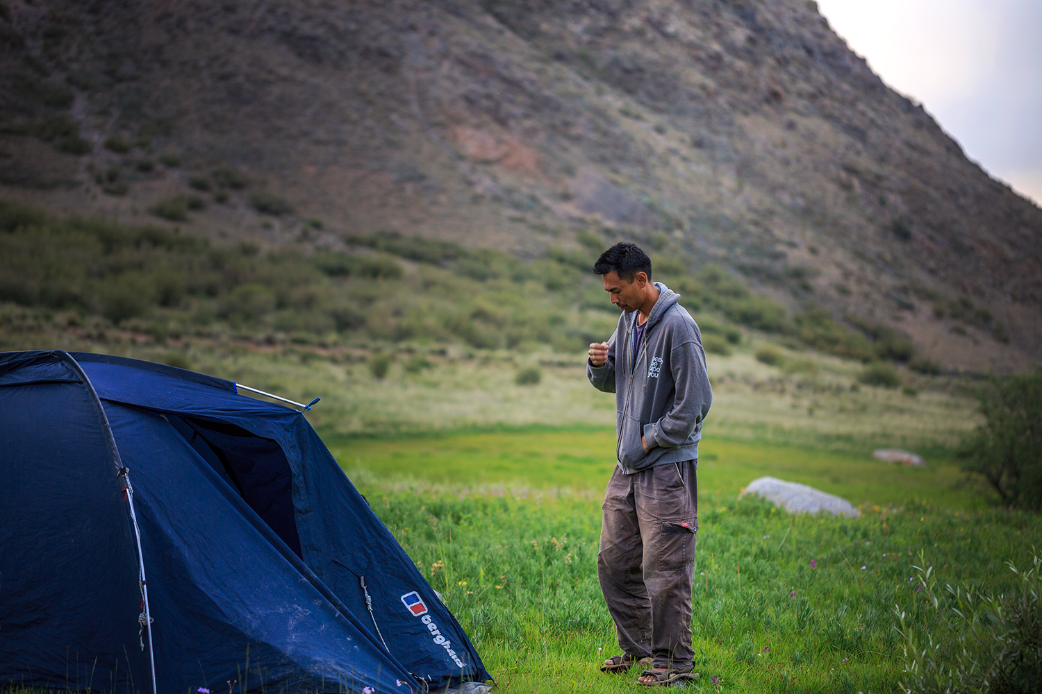 battling against the extreme heat and strong wind in the dry tundra of the lower Tien Shan