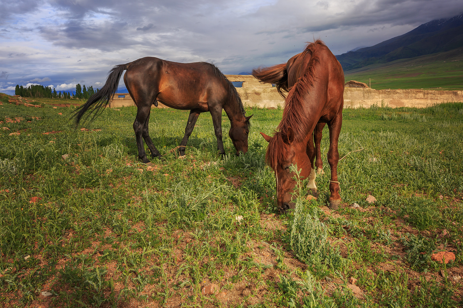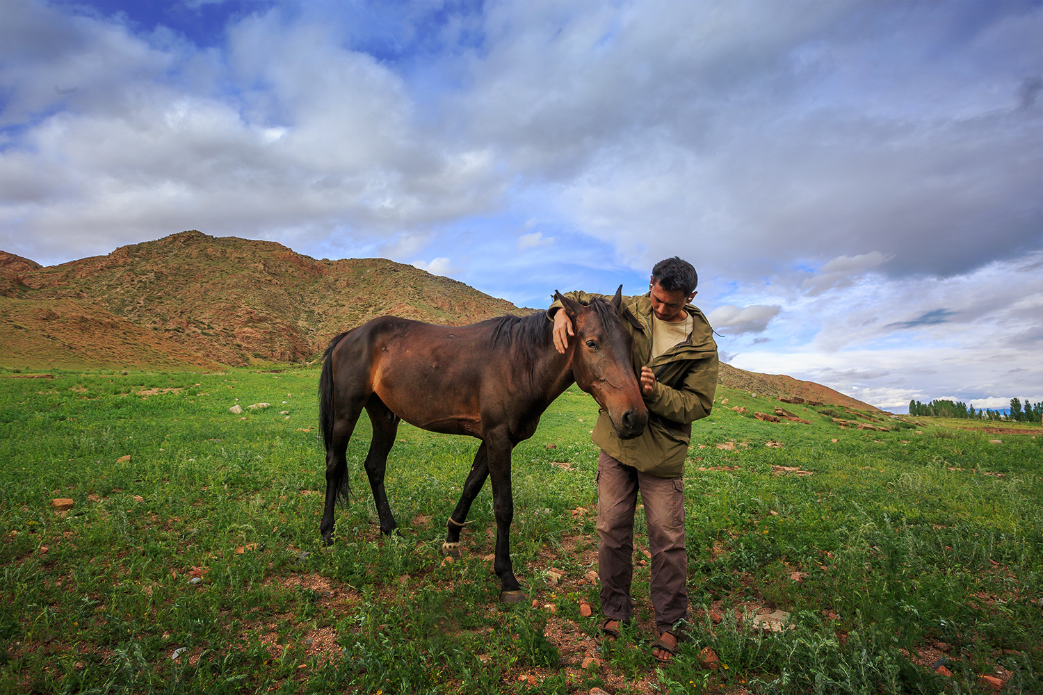 I continued my journey early the next day once the sun showed up. It was extremely hot and windy. Once in a while I looked up in the sky, looking for clouds to cover the direct sun… but I saw none. I then kept my head down and kept going. I turned south away from the lake of Issykkul, towards the snow mountains… towards the Tosor pass, which is almost 4000m high. Towards the snow mountains, the grass is good. Travelling on horses is totally different than travelling on a bicycle or a ski. I cant think only about myself, but I have to think about the horses as well. By the end of the day I have to make sure that I end up somewhere with good source of water and green grass. My horses need to eat and rest well before a long day of walking, climbing and descending.