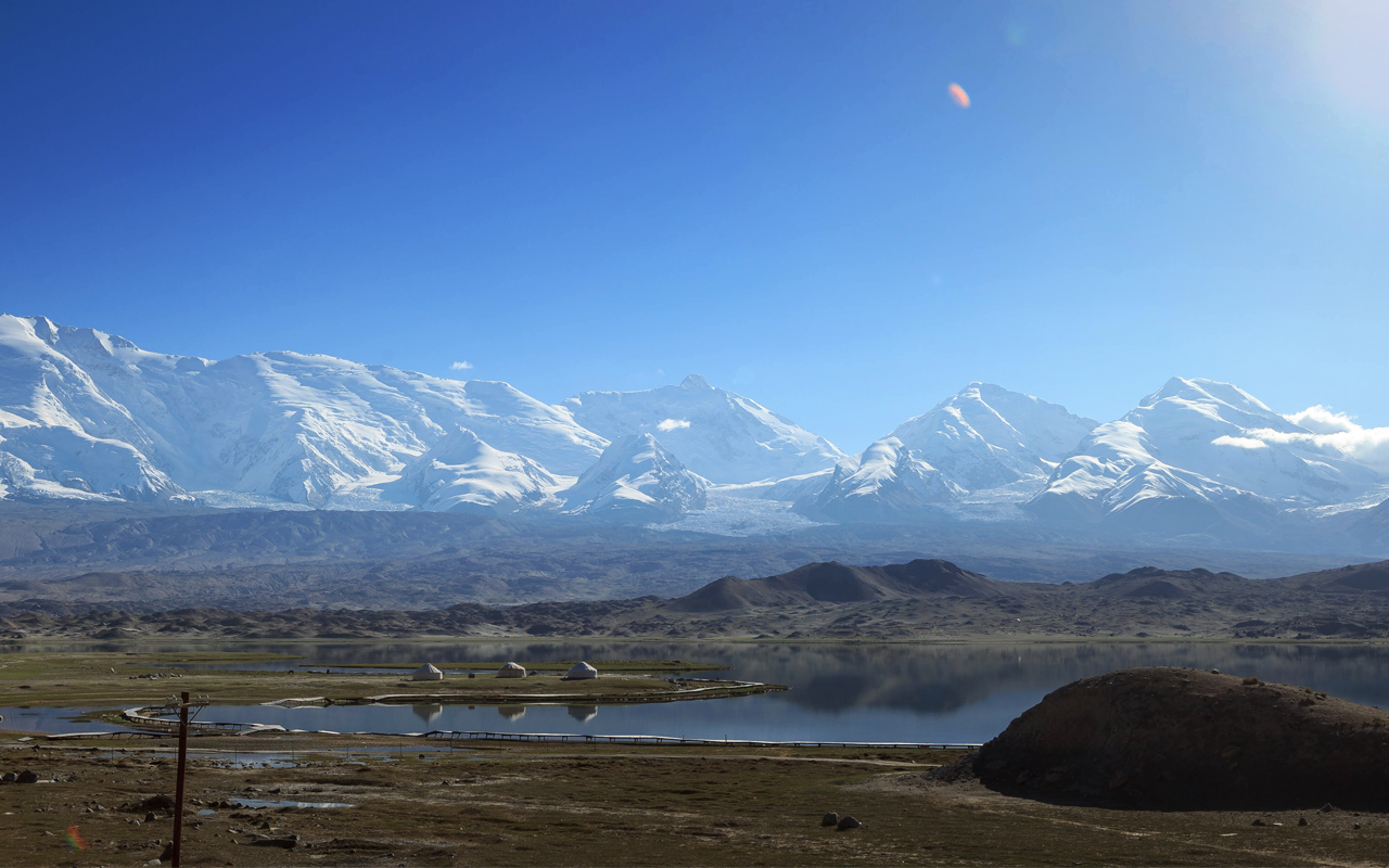 It was amazing to see so many cultures here in Xinjiang, just a few hours before, we have been surrounded by Tajik people, but once we reached the lake, we are surrounded by the Kyrgyz. We had a good lunch and dinner here with the Kyrgyz, who welcomed us with their smiles, tea and bread. I think I understand the Kyrgyz more since I visit this place. These people who live in the surroundings are the real Kyrgyz, more real than those in Kyrgyzstan itself. They speak pure Kyrgyz, they never consumed alcohol since it is prohibited for the Muslims. They don’t understand a word of Russian. It is so different here compared to Kyrgyzstan. In Kyrgyzstan, even deep inside the village, they still mix Russian and Kyrgyz words in their everyday communication. Some of them consumed alcohol and the lifestyle is a lot Russian. Now I finally understand how the real Kyrgyz life is, without being influenced by the old Soviet of Mother Russia. We then found the best place to put our tent, closed to the water overlooking the Muztagh Ata and other surrounding peaks of the Pamir behind those fresh water. Susan camped a bit far from me, wanted to feel alone like I usually do. She finally went to sleep early since she didn’t sleep the night before struggling in the cold. Day is long here in summer, sunset is almost midnight and the sun rises only 6 hours later.