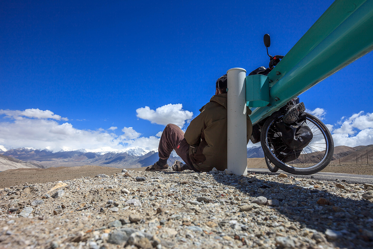 This is the first time on this trip I cycled with someone. The Spanish will ride with me all the way back to Kashgar. But we are all on our own pace, because to keep up with someone else’s pace is tiring. That’s what we are, humans. We all have our own pace. Each of our heart beats at a different rate. Some of us are slow some are fast. We are all unique. There’s nothing wrong with that. We left Tashkorgan quite late since it was cold, we started to push our pedal at around 11 after a good Tajik breakfast in Tashkorgan. The ride was good at first before the headwind started to slow us down. Once the headwind came in, we both were fighting hard to keep going forward. After a few hours, the gravity also joined the wind to slow us down even more, which took us 2 days to reach a mountain pass at over 4000m altitude before the road turned to be easy for us. To me, the wind is harder to fight compared to a big climb. From my experience, fighting the strong headwind in the steppe of Kazakhstan and Mongolia is much harder compared to big climbs in the Lower Himalayas and the southern ring of the Tibetan Plateau.