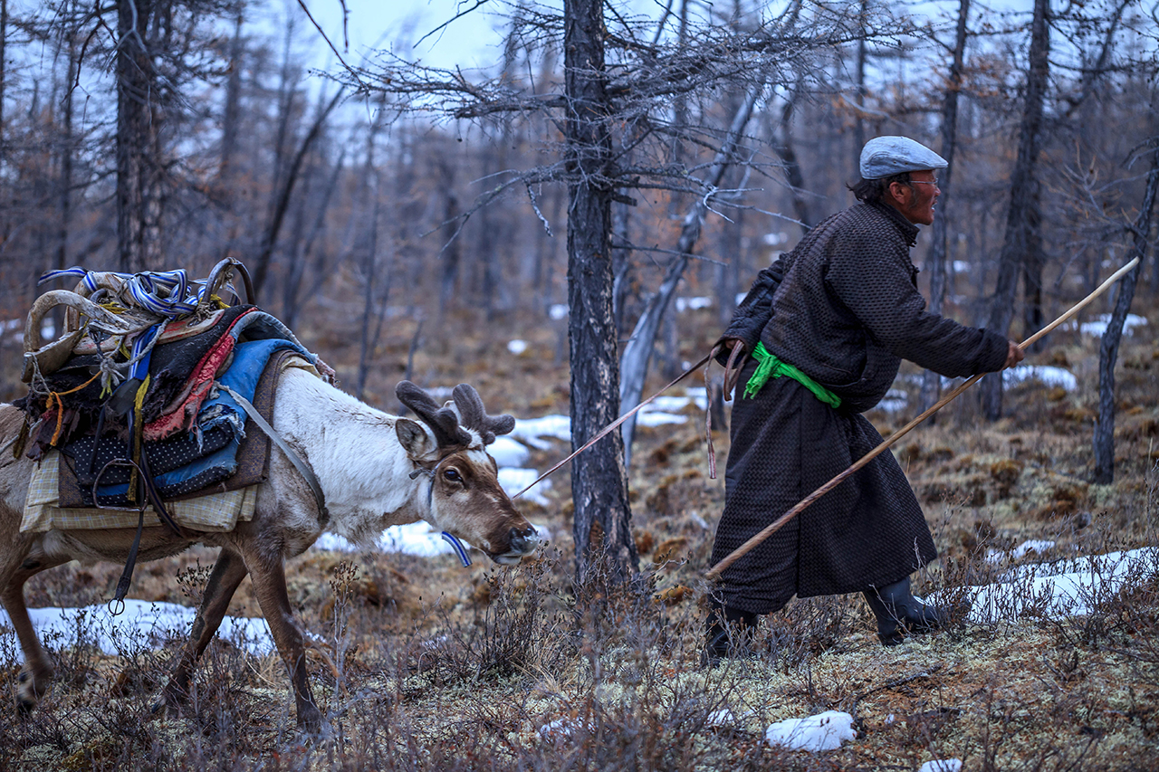 Upon reaching the Tsataan camp in the middle of the forest, everything was exotic to me. The tent here is not like the normal Mongolian ger, but its more like a south American style hut. It’s a shape of a cone and staying inside it making me feel like Im in a forest of Peru more like Mongolia. The Tsataan people are the minority and only living here in the forest. Theyre the people of reindeer. Reindeer is everything for them. Their lives depend on it. The number is about 300-400 people left but I see no more than 30. Maybe because theyre scattered all over the forest looking for a place to settle for the summer which is coming soon. Theyre real nomads, they move a few times a year and they really have to. Staying in the winter camp on summer is dangerous for the reindeer, as they will be vulnerable to insects and parasites.
