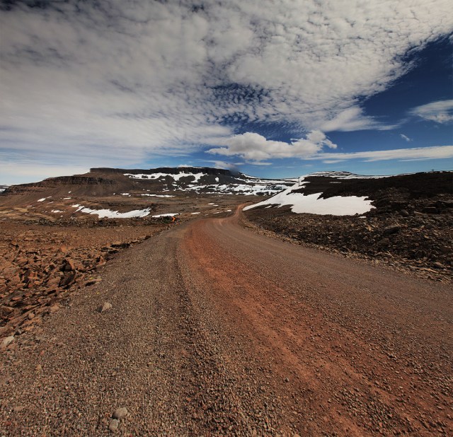 I struggled for hours to get to the first mountain pass. Kept my head down, pedaled very slowly on my way up. This climb really reminds me of riding in Tibet years ago. I stopped for 5 minutes for every 20 minutes of climb. After every stop, my body got weaker, I climbed slower. The mountain pass seems unreachable. After a while I took a long stop, took a ½ hour break for lunch. I ate all I can and drink the mountain water from the stream. I then spent all the energy left on me to finish the climb, to get to the top of the mountain. Once I reached the mountain pass, I felt like a champion! I stopped there a while to enjoy the view from the highpoint and suddenly a bus came by. The bus stopped right in front of me and there were many tourists came out from the bus. Everyone were cheering at me, surrounded me and snapping my photos! I felt so good! Few minutes before I was all alone struggling and now I was surrounded by curious tourists cheering at me and asking me so many questions. Most of them are from Germany, weird thing that I met so many Germans here in Iceland. I met one or two Americans, French and many others but 90% I met were Germans.