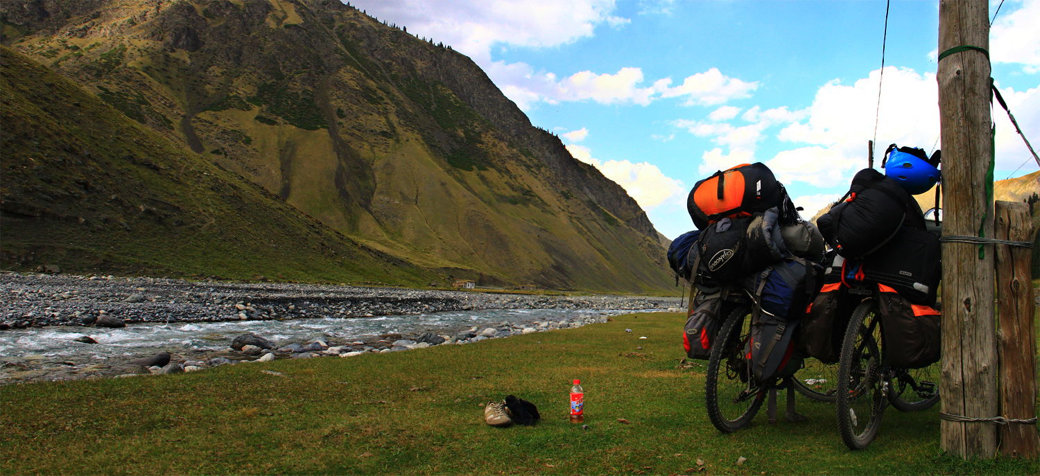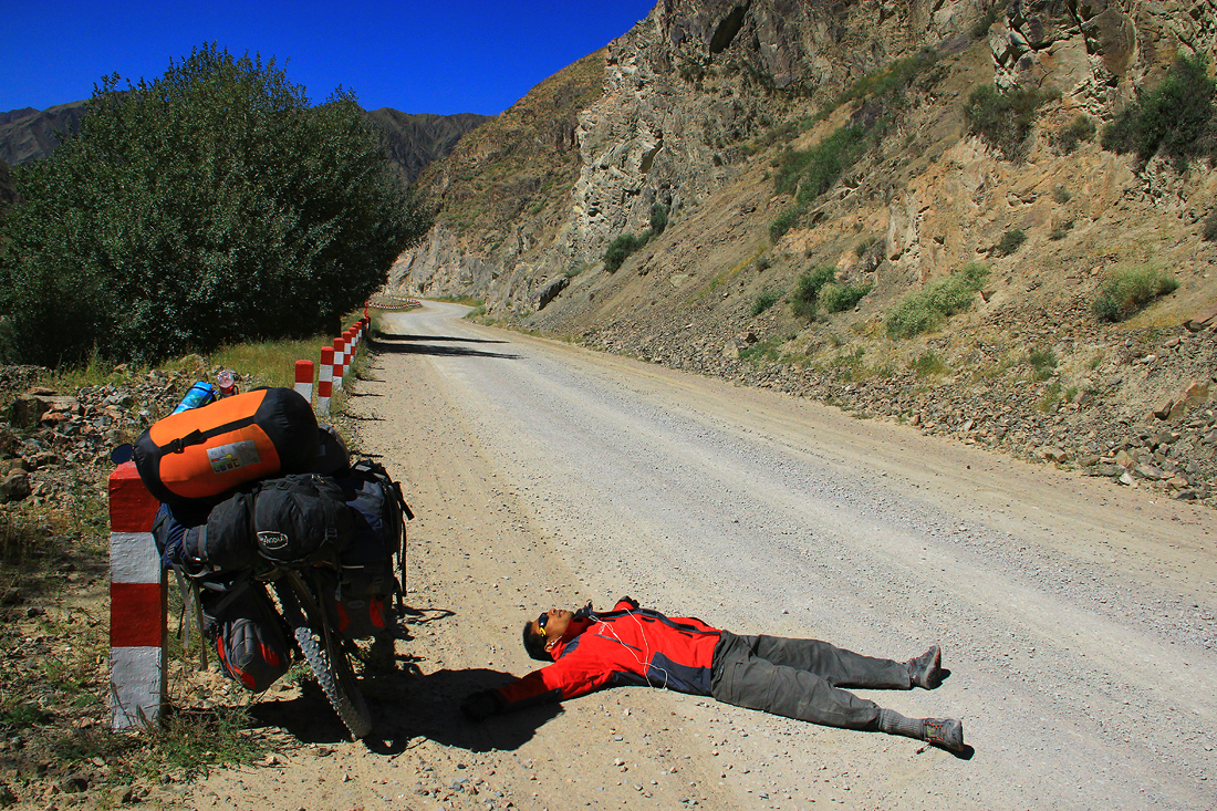 The ride along the Tian Shan mountains was simply… marvelous. Uhh.. i couldnt think of any better word to describe the ride. Sorry i couldnt share the experience with u guys, the best i could do is to share it in form of writing and photos. The road was bad and dangerous, so theres almost no vehicles passing by this road we were riding. The road was ours for the whole day, quiet, we only heard the sound of nature, water from the river, the cold siberian wind and birds. Riding under the clear blue sky, sunny day with the tailwind blowing from the north made our ride pleasant. We rode fast because it was mostly downhill and we felt like flying with our bikes, the eagles led us, enjoying the view, listening to our favourite music once in a while, taking a good nap by the river… feels like heaven! Tian Shan ride is definitely better than Tibet, in my opinion.