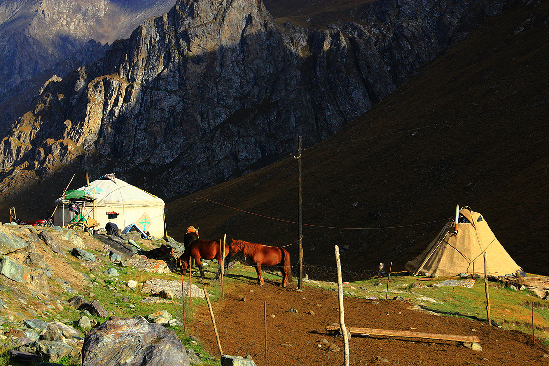 Stayed in a very warm Kazakh family today. We were riding through the mountains, tired of endless climb, and at some point, we found a Kazakh yurt. Went in search of water, they finally asked us if we wanna stay a night in their place. We agreed and they cook delicious food for us. It was a very nice experience living with this warm Kazakh family, the experience that i will only get when travel with bicycle. Im so glad im cycling, most of these experiences that i had, i can never get it if i book a travel tour and travel by group with other tourists. Me and Pascal spent most of our time playing with their 3 yrs old lovely but aggressvie kid. It is cold here at some 3000m altitude. We are expecting tough ride to the mountain pass tomorrow, getting ready for subzero temperature!!