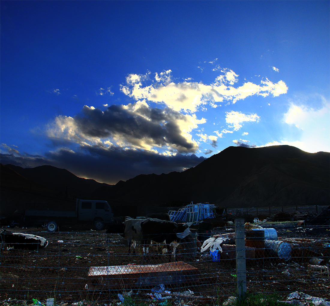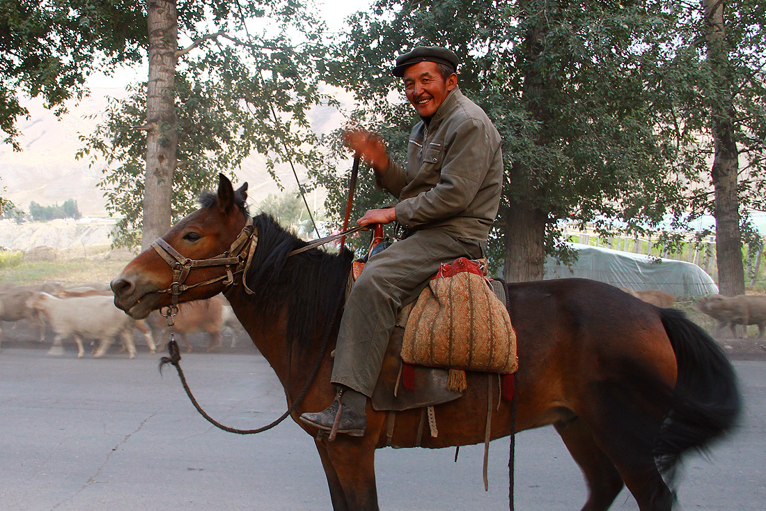 I expected the ride down would be marvelous but the first 15 minutes was horrible! My hand were freezing i actually thought i caught a frostbite on my fingers. It was so painful, didnt know what to do but to continue the ride down from the peak since i need to get to the lower altitude fast. I never felt this kind of pain my whole life. After about 1/2 hour riding down, i managed to get as low as 3400m altitude and the pain was gone, the ride became marvelous. The sunlight and the blue sky finally appeared again and i felt warmed again. The ride was really good, i went fast from 4280m altitude down to some 2000m altitude in around 2 hours. Passed by so many beautiful views of mountains and small kazakh villages under the blue sky and the beautiful sunset. I finally stopped at a small unknown town (never exist on my chinese map) and waited for Pascal, then stayed a night here. We were the only tourists here, most people who stayed here are lorry drivers so the locals here were very curious at us.