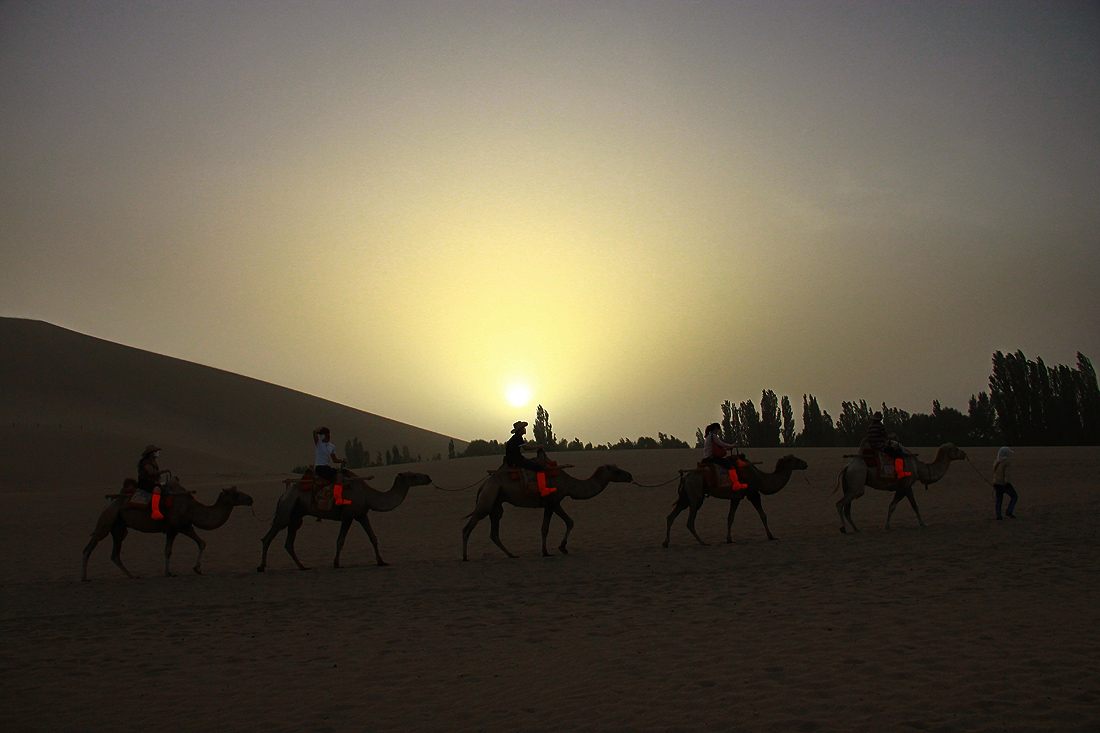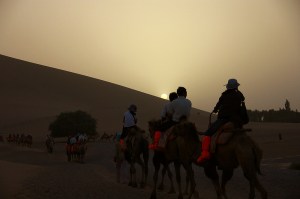 Finally i arrived Dunhuang 3 days ago, after a harsh day of cycling some 80km offroad from Aksai Kazakzu. I was really exhausted riding to Dunhuang, firstly because the road was still under construction and secondly of course, the hot weather. The highest of the day was some 45 celcius, it was very hot and i felt so thirsty. While riding, i could imagine a mango juice with ice flowing thru my mouth. I then rode fast to Dunhuang and left Nancy behind hehe. Couldnt take it anymore, i need to get water fast. When i reached Dunhuang, the first thing i look was water… cold water… with ice! Dunhuang, is nothing more than a tourist spot. This town was a very important town to Silk Road Travelers in the past, its an oasis town where it was a major stop for Silk Road Caravans. They have 2 famous tourist spot here which are the Mogao Cave, where its a home of a giant sleeping buddha and a crescent moon lake. So from now on, ill be riding along the infamous ancient Silk Road all the way to the Central Asia border. Actually, the starting point of the Silk Road path on the China part is in Xi’an and it stretches all the way to Ankara in Turkey. So actually i dont miss much on the China side anyway, nothing much in Xi’an except their terracota warriors and also the infamous Hua Shan mountain.