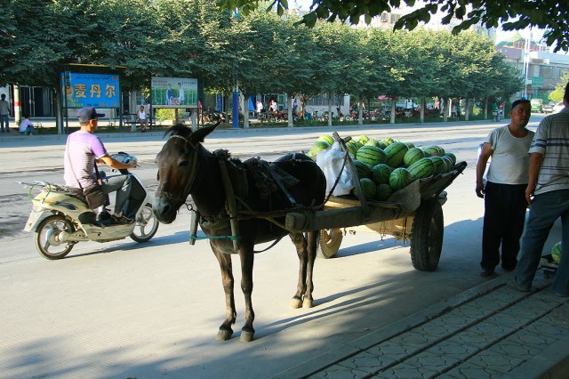 Finally we had an easy ride. We rode some easy 150km here which put us very close to Kumul, a big town where there is a bicycle shop. From 1800m altitude in Xingxinxia, we rode down easily to 860m altitude, camp a night and rode another 60km to Kumul, which was easy. We left our campsite early in the morning, and rode easily along a flatroad and reached Kumul around 12.30 noon. Since Im now in Xinjiang, more and more Uighur people here, and i see less chinese. Well, its too early to come out with a conclusion yet, but for now what i can see uighur people are less friendly compared to the chinese. Theyre not so talkative especially to foreigners compared to the chinese. I remember some few days back, a chinese fruit seller at the side of the road saw me, stopped me because he wanted to talk to me. I stopped there to buy a watermelon since it was so hot. But then the fruit seller gave both me and Nancy 2 watermelon for free because he likes us so much. Hehe. I think it is time now for me to pick up some basic Uighur language, since they dont speak mandarin and Nancy cant understand them either. It sounds a bit like Turkish language, for now i know a few basic words like hello (yah-semoh-sis), bye (hosh) and thank you (rahmat).