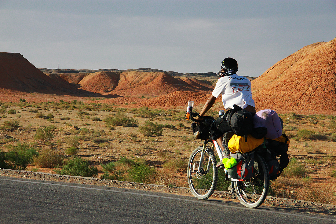 We were so tired so we stayed a day in Liuyuan. The next ride was not so hard because it was a flat road, but still hard to move forward due to strong wind from the north. It is very hot cycling here in the desert, but when the wind blows, it gets very cold. This is because the wind blows from the north, coming from artic blowing through russia, resulting to a unbelievable temperature drop when the wind blows. At 1 time the reading on my meter dropped from 46c down to 12c in less than a minute! We rode 90km to a town called Xingxingxia, 90km northwest of Liuyuan, and we finally reached the last province for me in China, which is Xinjiang. Again, we couldnt help it since we felt very tired, so we took another day rest here. Nothing much in this town, its a mixture of Uighur and Chinese Han people. Water and electricity is a problem here. Its a very small town and lots of lorry drivers here too. Nothing to see in this town so we just took a rest here…