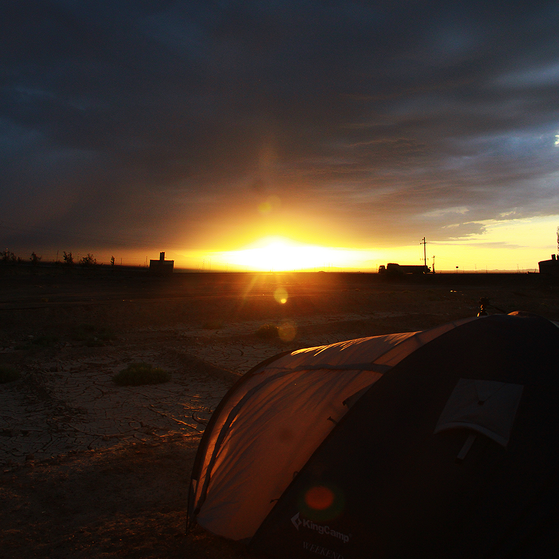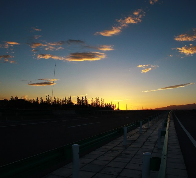 Its a good thing that we took a rest here. Nancy felt very tired and i felt so lazy to cycle today. Probably the weather, i did nothing except eat and sleep… and yea… they have ice cream here so i ate total of 7 ice cream today hehe. Good thing they have a small supermarket here so i bought some food for camping. We need to camp because after this town, theres nothing for at least another 200km. so we will cycle some 100km tomorrow under the hot sun, camp a night in the desert, and do another 100 before reaching the next town available. It is cloudy the whole day today but during sunset, the sky is so clear and the sky color is amazing. Its heaven for photographers here. I then discuss this with Nancy, we dont know why, but the sunset here in northern china is always… amazing. Its beautiful almost every sunset, and i just cant stop snapping pictures. The place i stayed here is full of lorry drivers. Guess its a rest place for them after a long journey of driving. We are the only cyclists here, the rest are all lorry drivers…