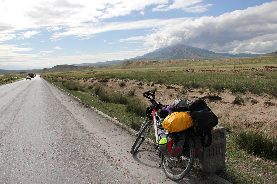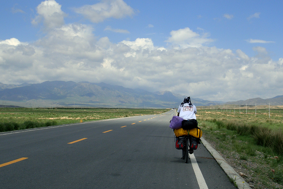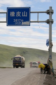 I felt happy for Nancy, shes getting stronger each day of ride. Our ride to Chaka was tough, almost as tough as my ride when i was riding the Tibetan Plateau. The first 2 hours of ride, we rode not so steep uphill but we rode against the wind, which slowed us down by a lot. We then took a 1/2 hr rest. Then from 3125m altitude, we climbed some 20km all the way up to 3820m altitude! This is the first mountain pass i climbed in Qinghai province, its more than 1000m altitude lower than the highest i climbed in tibet, but its still tough with bad dirt road and so many lorries along the climb to the pass. Suprising, Nancy didnt give up and she made it to the pass! She just kept going!