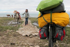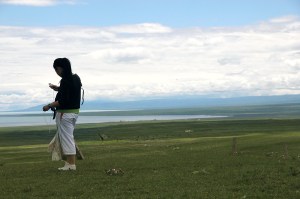 After we took a rest at Dataongzhen, 100km northwest of Xining, we rode another 50km to Qinghai Lake. It was easy, but cold! Arghh, i hate it! It was raining all the way along our ride. This time, i have to leave Nancy behind. I just cycle at my own speed, because i couldnt take the cold and the rain. So i cycled hoping to get out from the rain area. But after few minutes, i felt bad leaving Nancy behind so far. So i decided to stop and wait for her. But it wasnt long for us to reach the lake. To cycle around the lake will take around 320km distance. The lake is big… and beautiful.